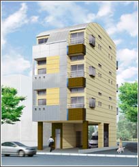 建物が完成し、後は細かなチェックと各検査を受けると竣工です。完成した建物を見ると私達がここにビルを建設する前に比べて昼夜を問わず表の通りが明るくなったように感じられます。1階を駐車場にしている為、照明が多く夜は特に明るいです。その明るさは表を通る方や入居者の方が仕事や学校から帰ってくるのを優しく迎えているようにも思えます。