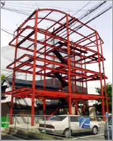 地盤改良が終了し、基礎工事に進んでいます。基礎工事では大量の鉄筋・セメントを使用しますが、今後の工程においても鉄骨を中心に多くの建材を使用します。昨年以来、中国の北京オリンピック特需や中東情勢が、鋼材や石油製品等の材料値上がりと材料調達に大きな影響を与えており、仕入れの負担は大きくなるばかりです。