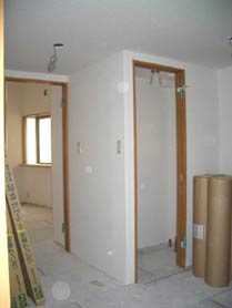 画像は室内の様子で、現在天井の工事中です。この後にはロフト工事や大工工事と室内は着々と完成に向けて進められますが、お部屋を造る作業の時期が一番多くの業者(20業者位)が集中し現場に入ります。それだけの業者数が段取り良く工事を進められるようにする為には、現場監督の存在が重要になってきます。