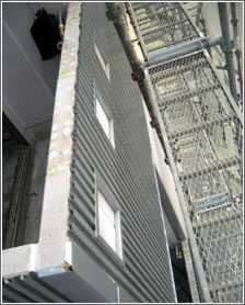 イル・グラッツィア美野島Tも天神の工事と同じくALC工事中です。この物件は敷地の形状は長方形タイプなのですが、若干、奥の間口が斜めになっていることで設計上、苦慮しました。せっかくの敷地は有効に利用しなければ“もったいない”ので、無駄なスペースができないように建物の裏側を間口に合わせて斜めにバルコニーを造ることにしました。